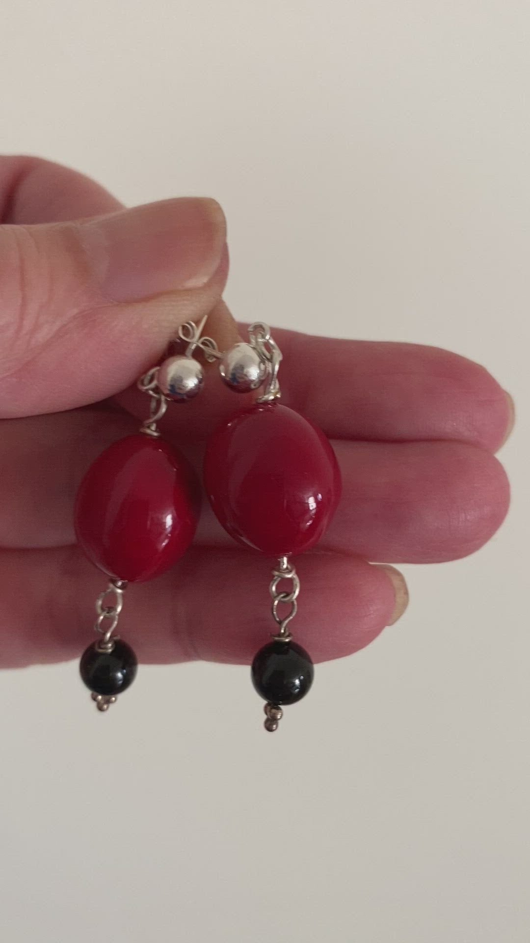 Great for a fun evening out or on weekends with your friends, you'll enjoy wearing these fun and flirty Holly Berry red and black earrings. If you love strong colours that reflect the bold unapologetic woman who you are--totally comfortable in her own right, don't pass these up as your Holiday glam earrings!